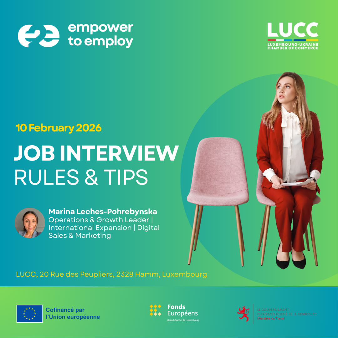As you know, LUCC is running the Empower to Employ project with the support of FSE+ and the Ministère du Travail du Luxembourg, aiming to help Ukrainians integrate into the Luxembourg job market.